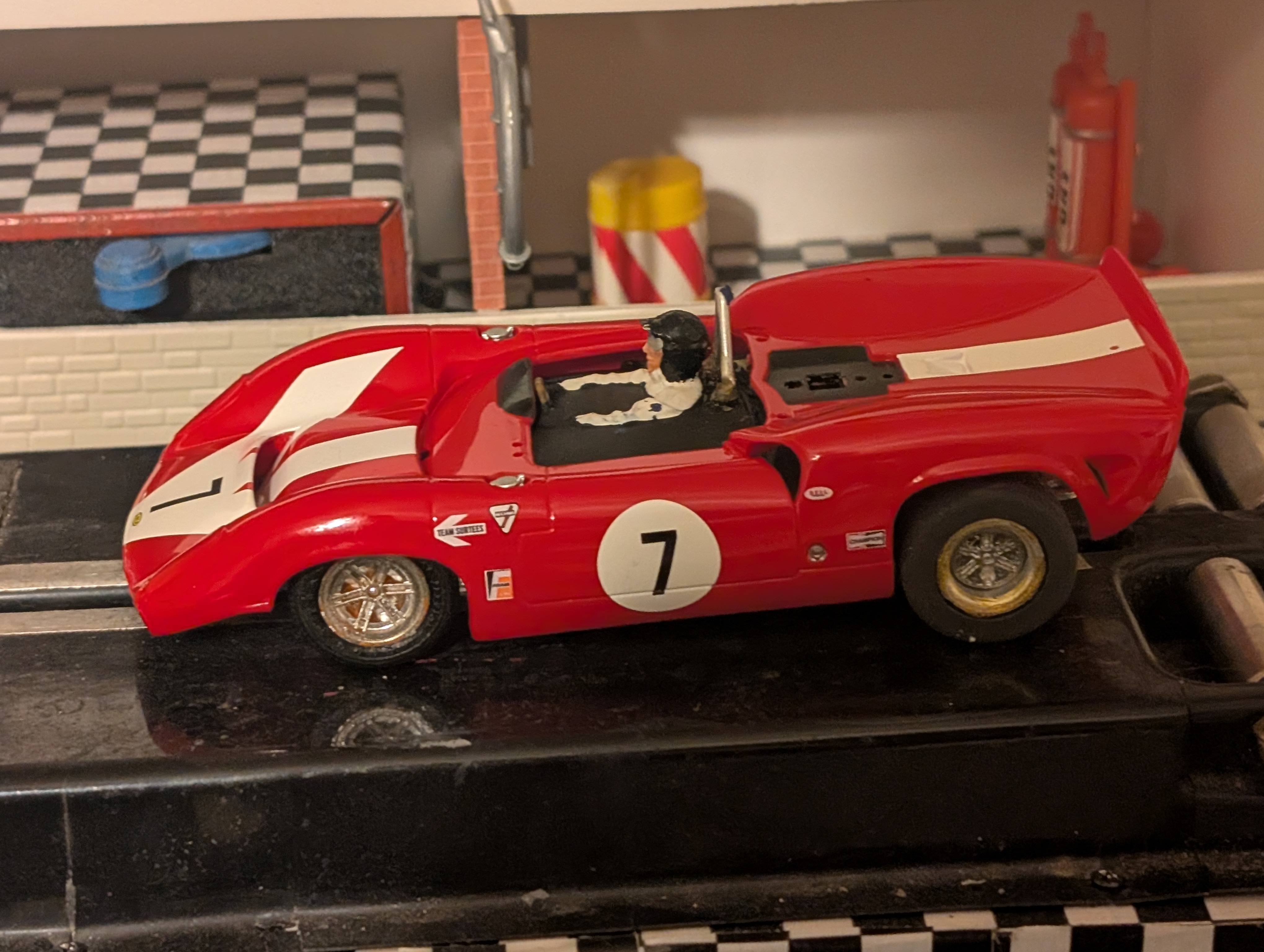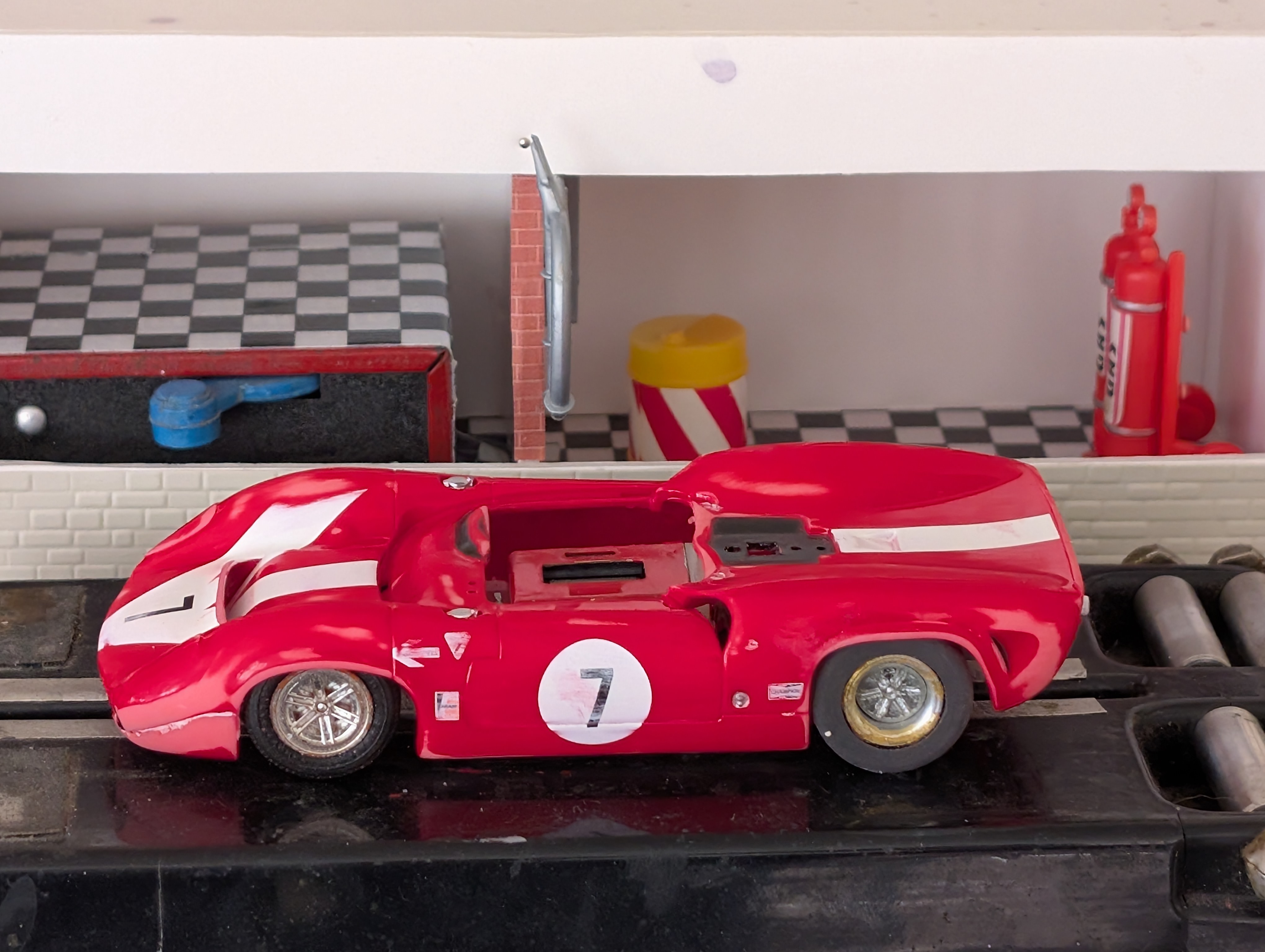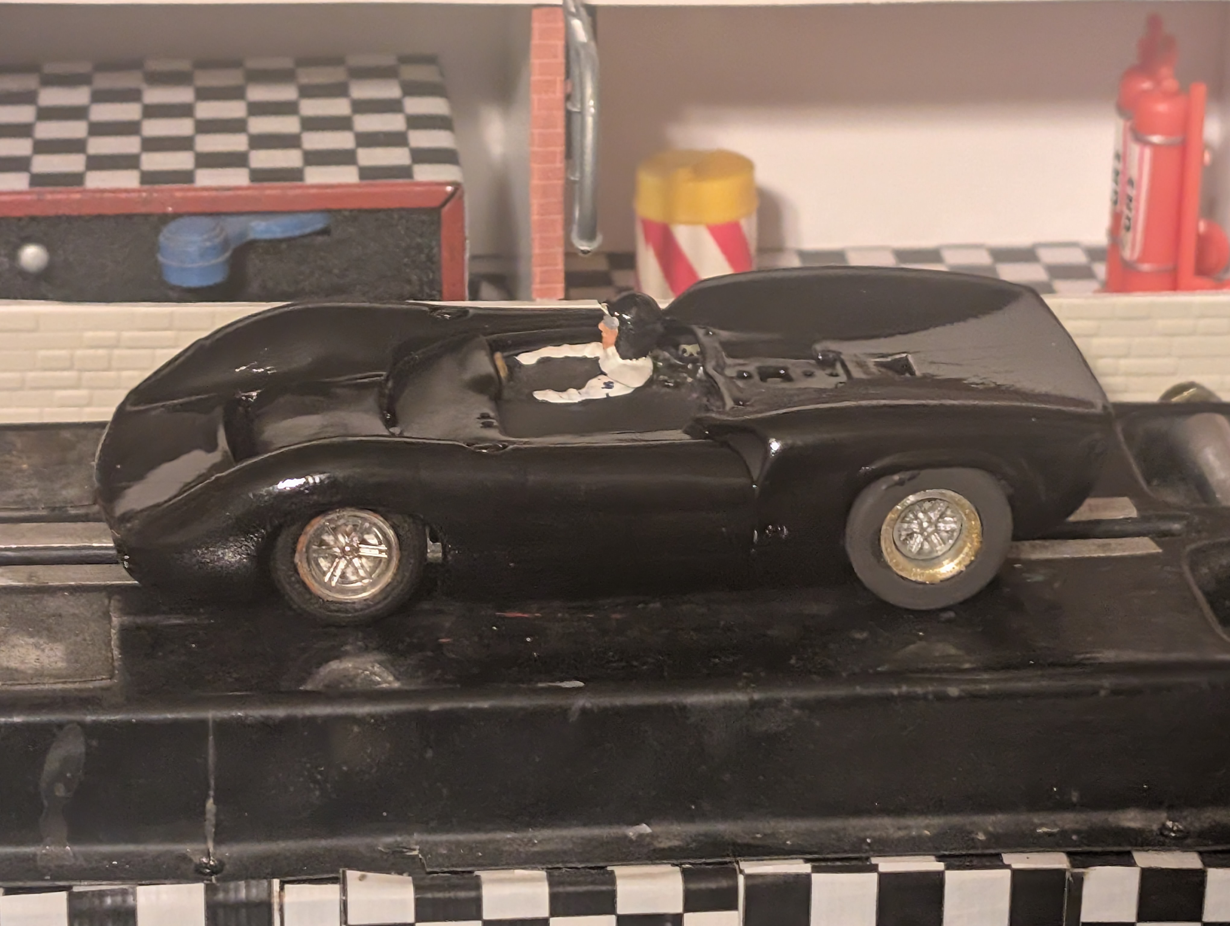 Body was reproduction in resin done by Sam Mcmurray. That body got destroyed when I attempted to remove its paint to use it as a 3D scan mold. Now that car has a modern monogram body, modified to fit the old chassis and repainted. The interior and the driver are from the original body. (*) Chassis convention: Back to the list of brand 'Monogram' Build 1052 |
