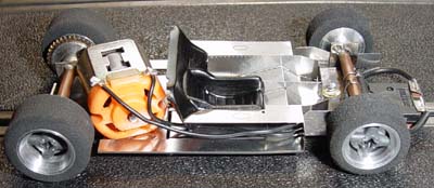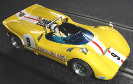 Matthieu Visser's McLaren M6A was as perfect as one would want for an actual working 1/32 scale car. Besides, it was FAST and very reliable to a fault, even after it lost a rear wheel! Soldiering on three, it achieved a second-place finish and handily won the Concours. Its chassis was a laser-cut angle-winder with a Professor Motor mill, not the fastest by all means but the most consistent. The whole car was finely detailed, far from the rough previous attempts submitted by Matt. A sure winner, and it was. It suffered absolutely no racing damage during its race to the overall win. It also cleared the .125" ground clearance with room to spare. |